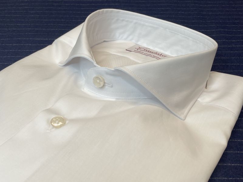 Per iniziare scegliamo una camicia in Zephir di cotone, perfetta per la stagione estiva perché rimane sempre fresca e traspirante: il suo nome infatti si ispira al vento Zefiro. Questa camicia bianca rimane morbida e luminosa, ed è la base ideale per andare a costruire la nostra ricetta.