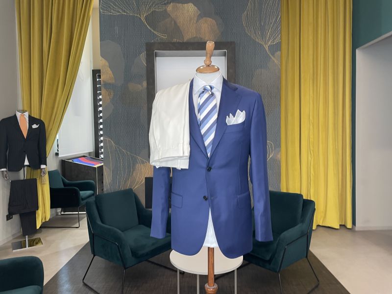 Non poteva mancare un pezzo classico e intramontabile come la giacca blu! In particolare questa giacca è in fresco lana, completamente intelata, con asole aperte e tasche applicate. Il blu è intenso ma non troppo scuro, perfetto per tutte quelle situazioni più formali a cui anche in primavera e in estate il gentleman deve presenziare.