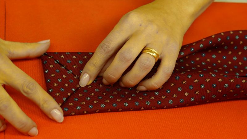 Si tratta di un pezzo unico di seta che viene ripiegato 7 volte senza aggiungere imbottitura. La sette pieghe può essere sfoderata o foderata.
